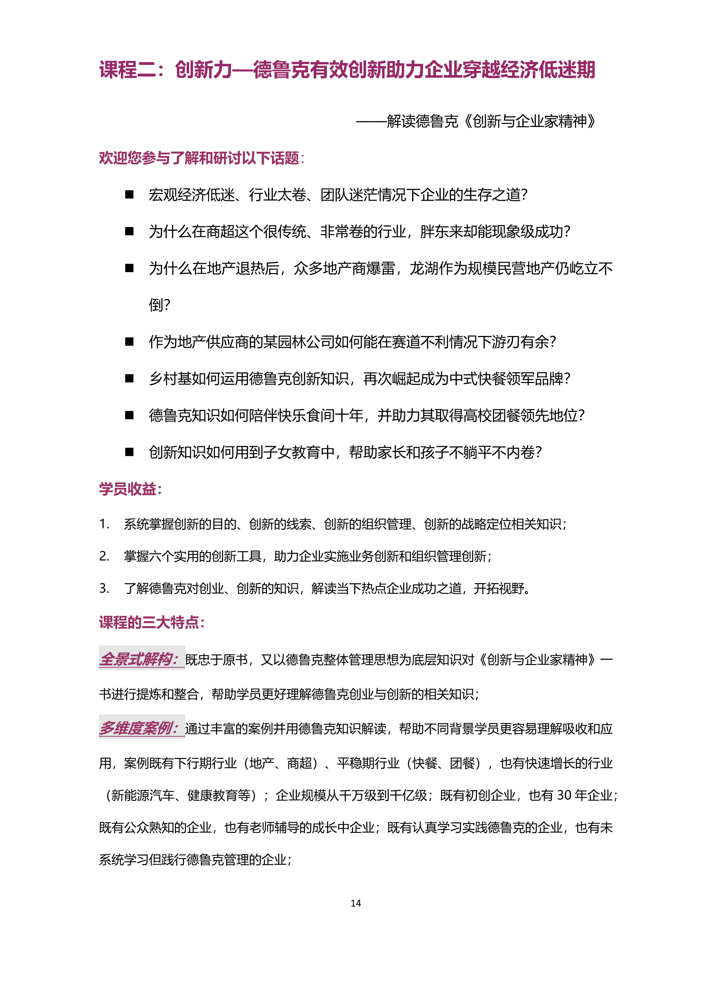 德魯克卓越經(jīng)營(yíng)訓(xùn)戰(zhàn)營(yíng)(2025年)發(fā)布時(shí)間:2025-07-10 上一個(gè):深圳2025年8月15-16日@賴凌云老師《團(tuán)隊(duì)打造篇:MBTI在團(tuán)隊(duì)管理中的應(yīng)用》下一個(gè):德魯克卓越管理工作坊第51期(2025年)